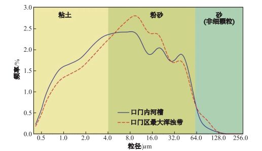 图 4 长江口分散悬沙的粒度频率分布曲线图 Fig.4 The frequency distribution versus log diameter of suspended sediments in Yangtze Estuary |