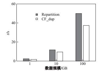 图 8 基于布谷鸟过滤器复制分片外连接算法与哈希重分片外连接算法比较 Fig.8 Compare between duplication outer join algorithm based on Cuckoo filter and Hash repartition outer join algorithm |