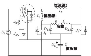 考虑两个恒流电感电流低于设定值时, 能量全部由电容提供, 则钳位电压源给恒流电感充电阶段满足