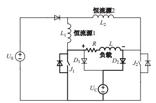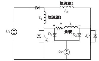 1.2 频域发射电路基本结构与原理频域发射主电路拓扑如图 2所示, 主要由恒流源单元、能量补充单元恒压钳位单元组成.恒流源单元在传统的全桥电路的基础上, 用电感