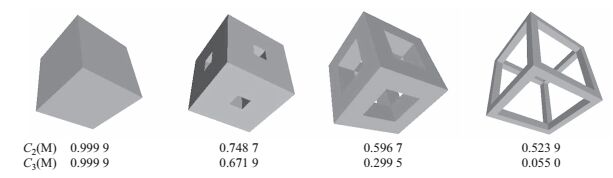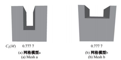 对于图 1的两个模型, C3计算出的凸度值分别为0.675~6和0.748~3, 即凹陷深的模型, 凸度值较低.而C1只受到凹陷的体积的影响, 没有考虑到凹陷是在模型的边缘区域还是内部区域.