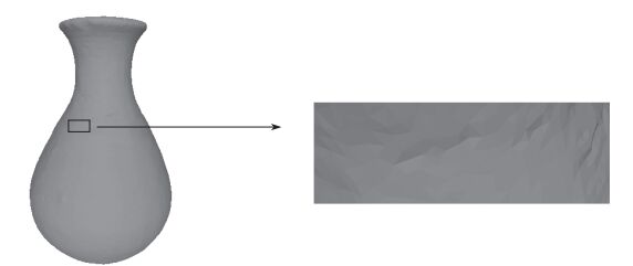 本文通过计算切平面与网格的交点得到切片, 由于网格模型的表面一般凹凸不平, 如图 7所示, 以上方法所得切片的边界常呈锯齿状, 而基于边界的方法c2对边界的变化非常敏感, 若采用c2进行凸度计算, 则会产生较大误差.因此我们采用基于面积的方法