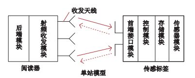 变电站中的众多电气设备构成一个类似隧道的环境, 加之大量金属材质物品的存在, 电波传播过程中的多径干扰尤为严重, 极大地影响监测系统的无线通信质量, 降低系统性能.为提高系统可靠性, 可采用多天线MIMO-RFID系统[5-8].多天线MIMO-RFID监测系统有单站模型和双站模型, 其中单站模型采用收发一体的射频模块和天线, 双站模型采用分离的发射/接收模块和天线.本文以图 3所示的单站多天线RFID监测系统为例, 其前向激活信道