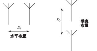 多天线有多种布局方式, 如图 8所示, 包括多个天线水平排列(简称为水平布置)、多个天线竖直排列(垂直布置).图 8中,