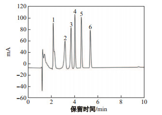 图 2 6种磺胺的高效液相色谱图 Fig.2 Chromatogram of standard solution of six sulfonamides by UHPLC |