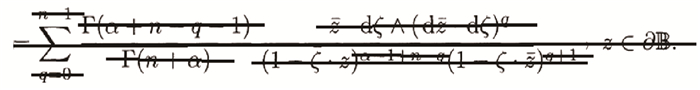 (3) 对骨干线上符号进行分析, 分别针对几种特殊情况讨论, 如分式、根式、积分等, 对于分式, 以LaTeX格式先输出