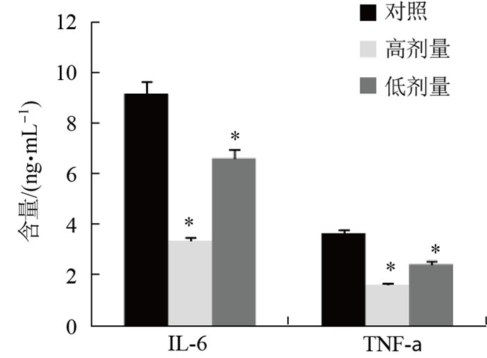 ELISA检测结果显示(见图 3), 对照组血液中IL-6和TNF-