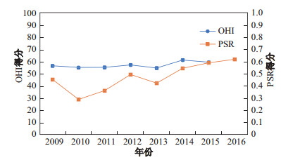 图 3 OHI与PSR评价综合结果 Fig.3 Evaluation result of OHI and PSR |